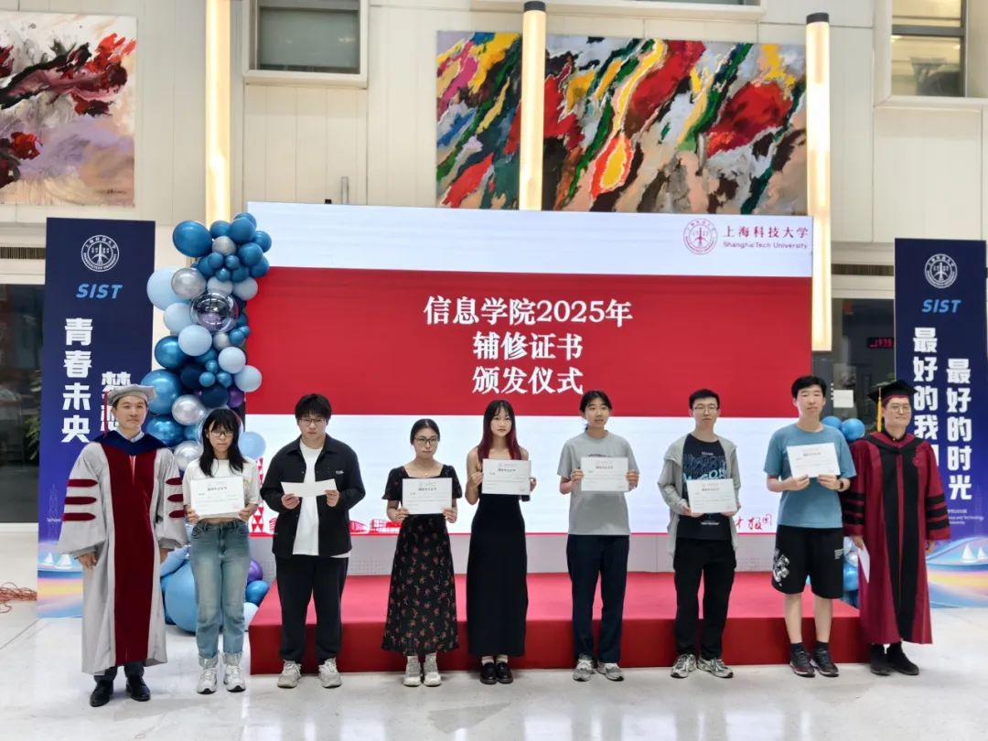 时维仲夏,万木葳蕤。2025年6月27日,上海科技大学信息学院2025届博士学位授予仪式(Hooding Ceremony)暨优秀毕设、优秀助教及辅修证书颁奖典礼于学院1号楼大厅庄严启幕。校党委书记李儒新院士、院长虞晶怡教授、博士生导师团与百余师生齐聚一堂,共证学术薪火传承,同启青春远征序章。