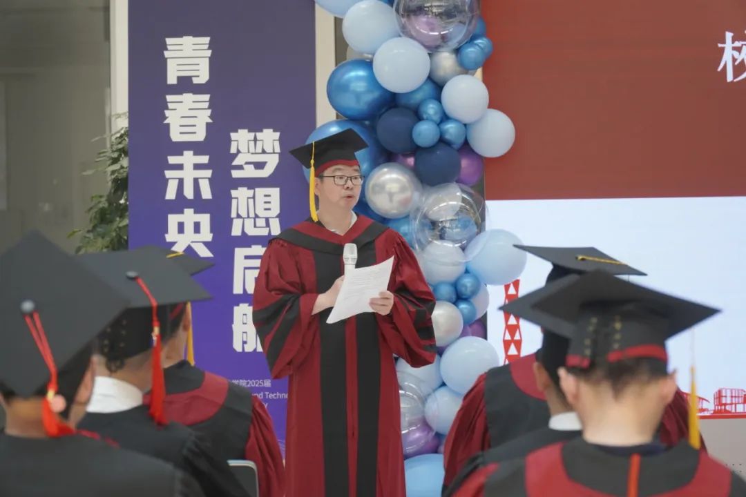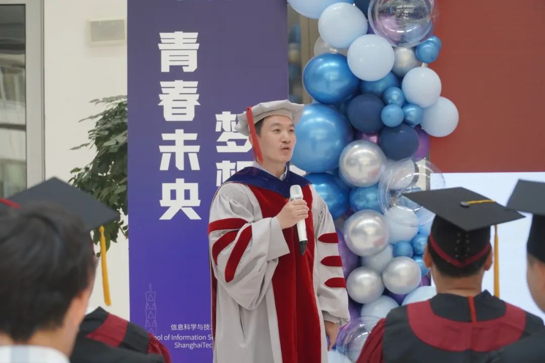 虞晶怡院长以琢玉育才之心寄语信息学子,2025届博士毕业生们以其卓越的成就和光明的去向有力证明了上科大学位的含金量,他强调这份荣耀是全体师生共同努力的结果。