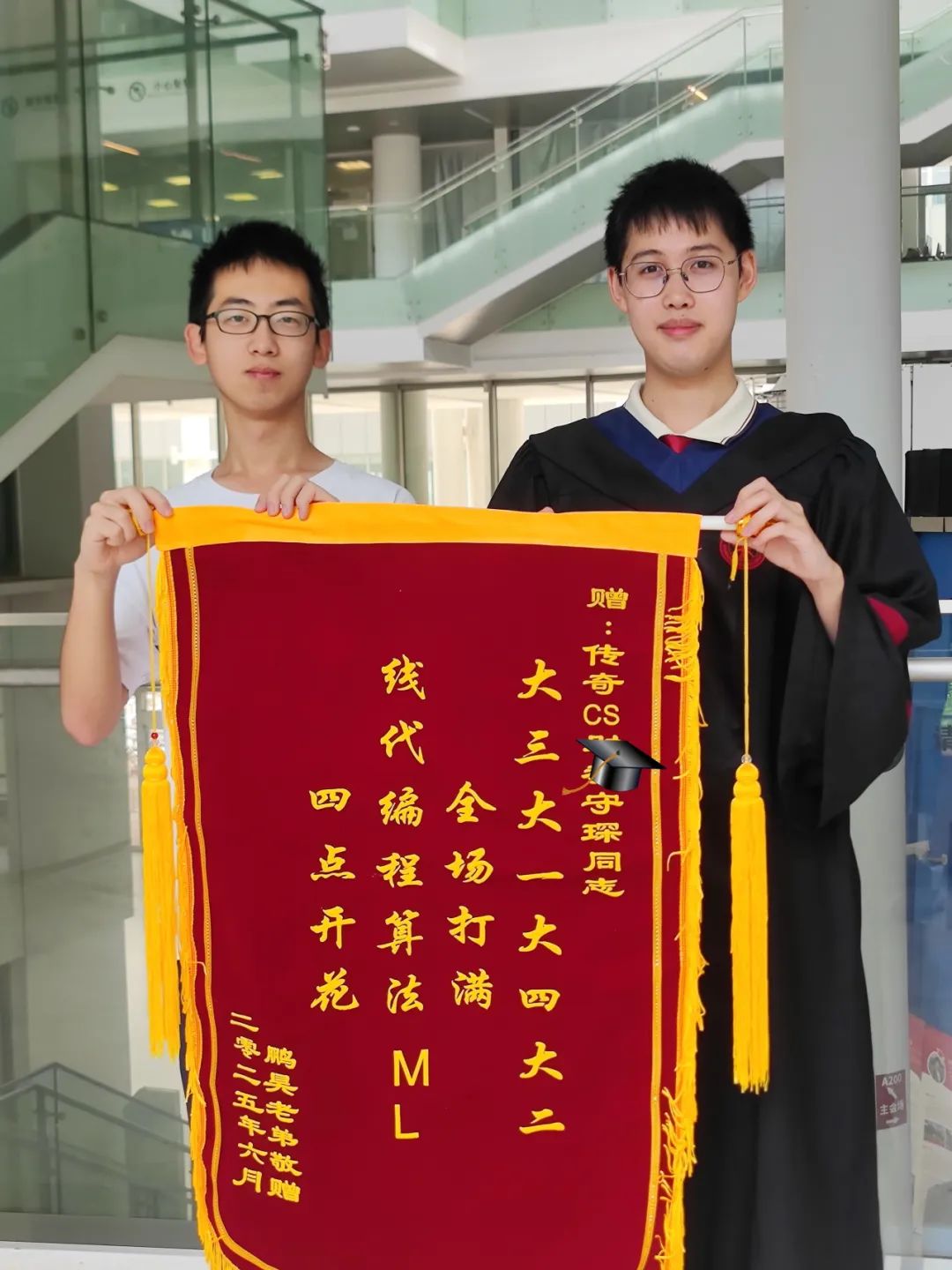 这段经历还让我与几位授课老师建立了深厚的师生情谊。感谢邵子瑜老师在概率论和强化学习课程中对学生、对课程认真负责的态度,在概率论和强化学习课上,引导我们系统理解先进的贝叶斯推断和“探索—利用”平衡,强调将这些理念拓展到日常决策。邵老师在我保研的时候提供了非常大的支持,在毕业设计阶段,邵老师一再提醒我从第一性原理出发思考问题,而不是一味的做“调包师”、“调参侠”。刘翀老师帮助我用全新的视角透彻理解线性代数,帮助我补上了理解层面上的短板,为后续课程与研究打下坚实基础,也让我在保研的面试、笔试中游刃有余。在承担算法与数据结构的课程助手期间,赵登吉老师在关键节点也给予了我重要的帮助。各位教授不仅在学术上严格要求,更以无微不至的人文关怀让我倍感温暖。每当回想起这段经历,师长的谆谆教诲仍历历在目。