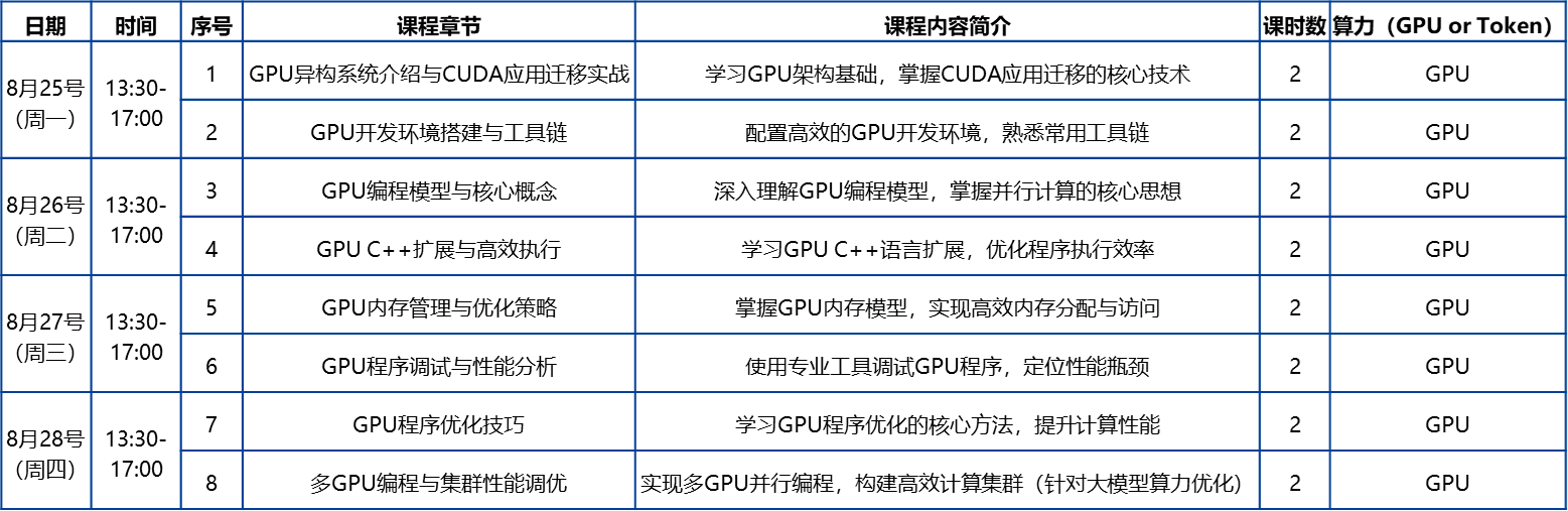 1. 想掌握下一代高性能计算的钥匙吗?《异构并行计算系统与GPU程序设计》带你深入沐曦GPU并行加速的世界!从零搭GPU开发环境,到编写高性能内核函数,再到多GPU编程和集群设计优化,本课程将手把手教你解锁GPU的极致算力。