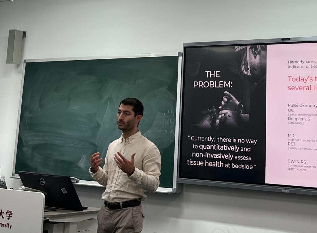 作为从学术走向产业化的践行者,Lacerenza博士分享了其在米兰理工的科研经历与创业历程,强调以真实需求定义产品、打造跨学科团队、确保数据处理透明可追溯、提供用户培训与持续迭代,是促进成果转化、实现从学术到产业落地的关键。在分享过程中,他还鼓励同学们要以开放协作与快速试错的方式推进技术转化,让生物医学光子学在临床与产业中形成完整的价值链条。