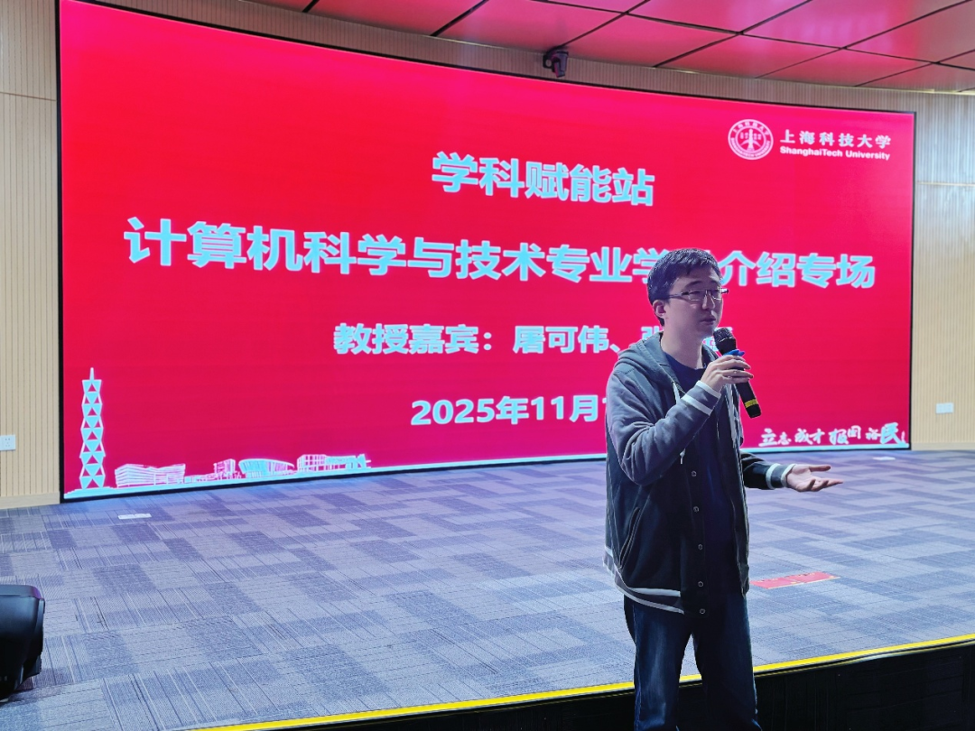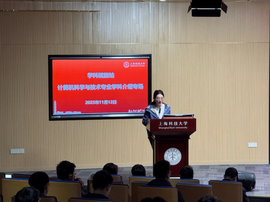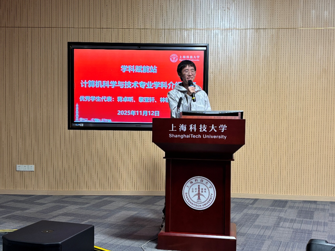 2025年11月12日,上海科技大学信息学院学科赋能站——计算机科学与技术专业专场活动成功举办。本次活动由 信息学院史玥老师 主持,信息学院助理院长屠可伟、信息学院智能医学信息研究中心主任张玉瑶出席,共同解析学科内涵,信息学院学生蒋卓昕、黎亚轩、林铠战、许正宁从实战角度提供行动指南,通过教授引领+朋辈示范双轨模式,为2025级本科生搭建起专业认知与学业规划的立体框架。
