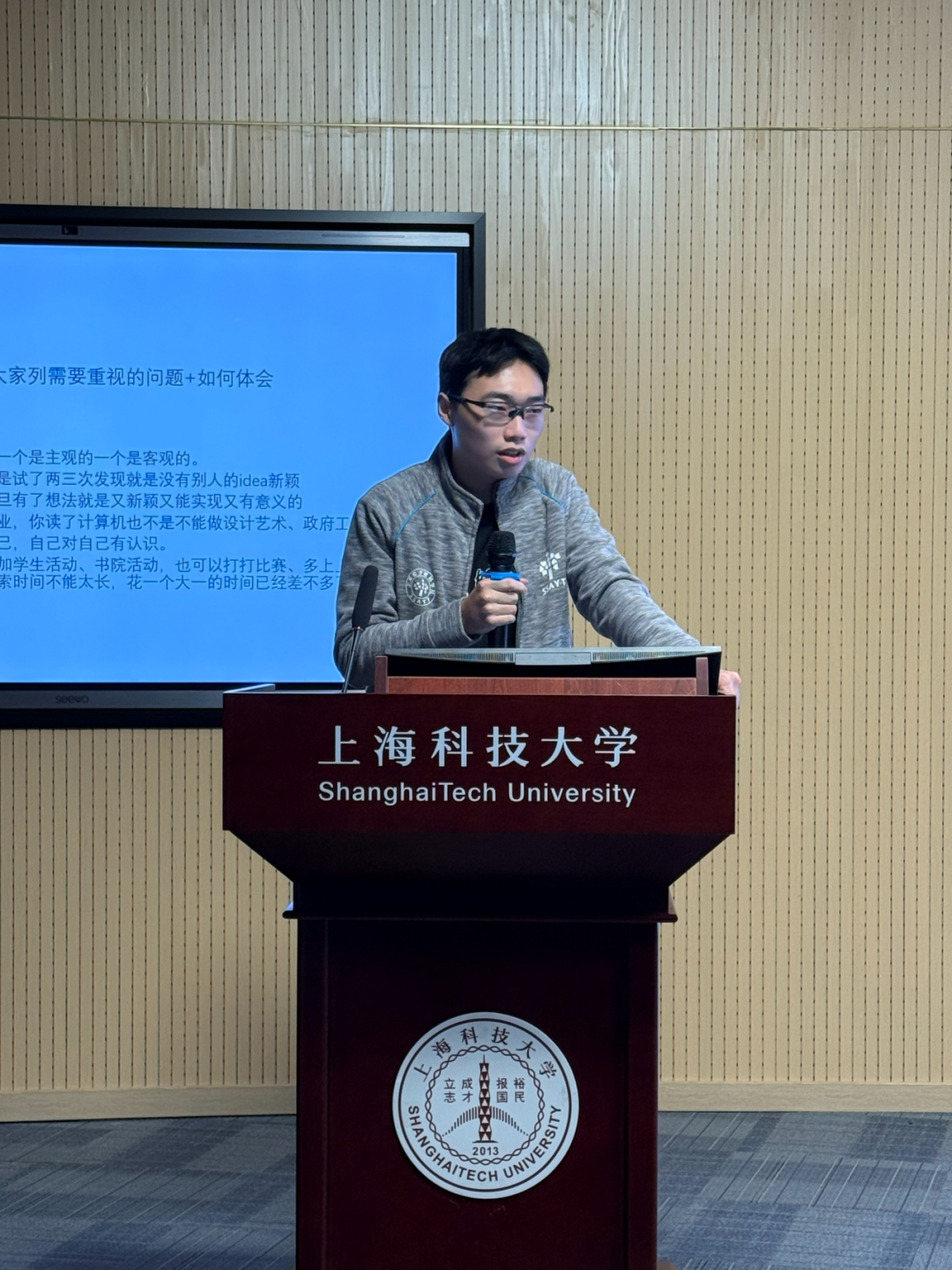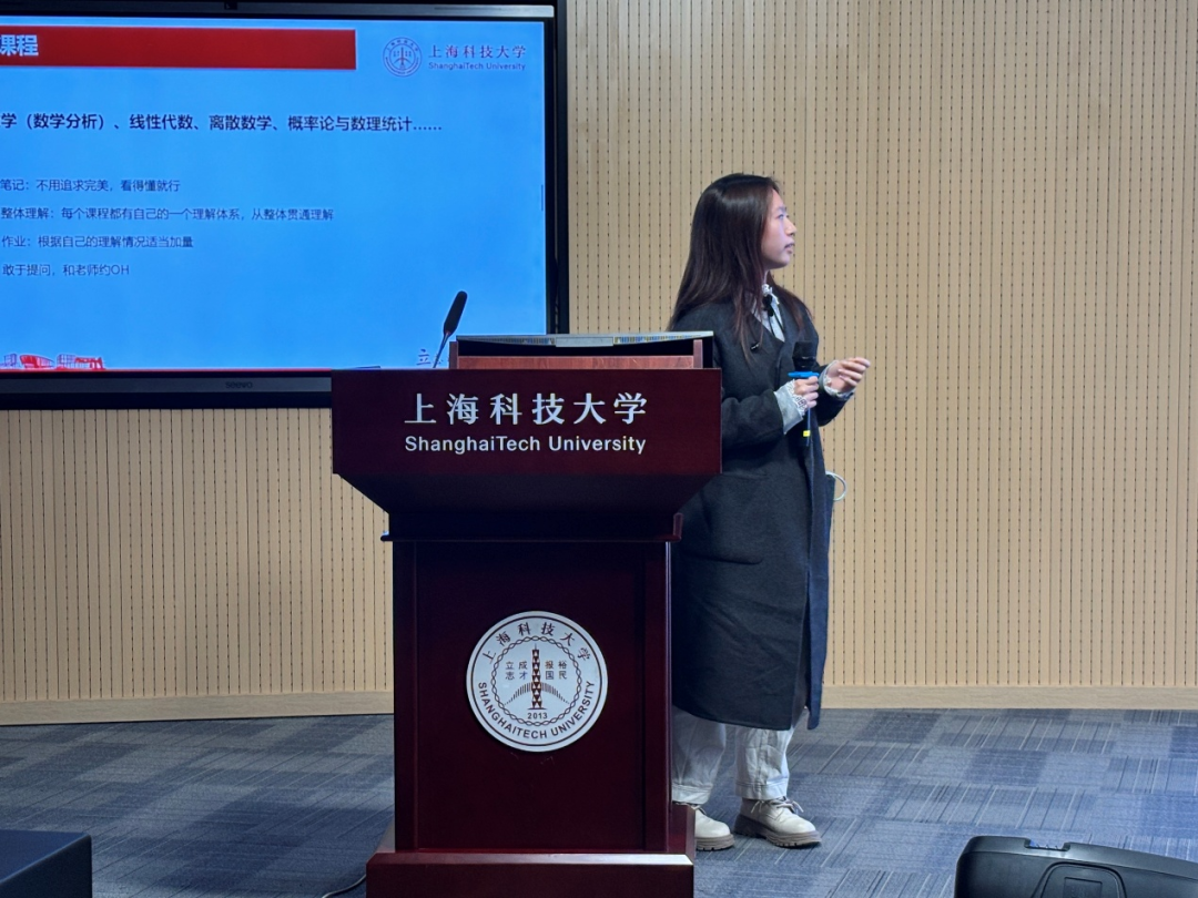 张玉瑶以三个关键问题引导同学们进行自我探索:“大学的意义是什么?”“为何选择上科大?”“你期待在信息学院收获什么?”她提出,这些问题关乎每位同学的目标设定与路径选择,建议大家在专业学习起步阶段深入思考,找准个人兴趣与学院资源的契合点。