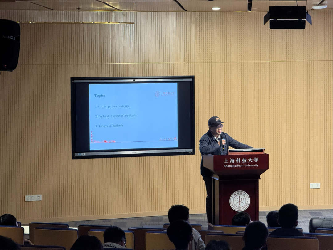 林铠战鼓励同学们通过竞赛、社团主动试错积累体感。他建议低年级广泛涉猎,高年级聚焦深耕,避免过早固化路径。对于行业与学术选择,关键在于匹配个人价值观。他建议利用上科大师生比优势,多与教授交流理解不同选择的日常状态。