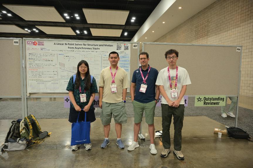 作为计算机视觉领域最重要的年度盛会之一,ICCV 2025的竞争异常激烈。我们团队此次投稿的论文《A Linear N-Point Solver for Structure and Motion from Asynchronous Tracks》经过严格的双盲评审,最终被大会接收为Highlight论文。本文提出了一种统一的方法,用于从具有任意时间戳的二维点对应关系中估计结构和线性运动。通过将问题表述为一阶动力学并利用恒定速度运动模型,我们推导出了一个新颖的线性点关联关系,从而能够有效地恢复线速度和三维点,并具有可预测的简并性和解的多样性。由于其通用性,该方法可以处理来自各种传感模式(如全局快门、卷帘快门和事件相机)的对应关系,甚至可以结合来自不同位置传感器的对应关系。我们在模拟和真实数据上验证了我们求解器的有效性,结果表明,与最新方法相比,我们的方法在所有模式下都有一致的改进。我们相信这项工作为从异步数据中进行高效的结构和运动估计开辟了道路。