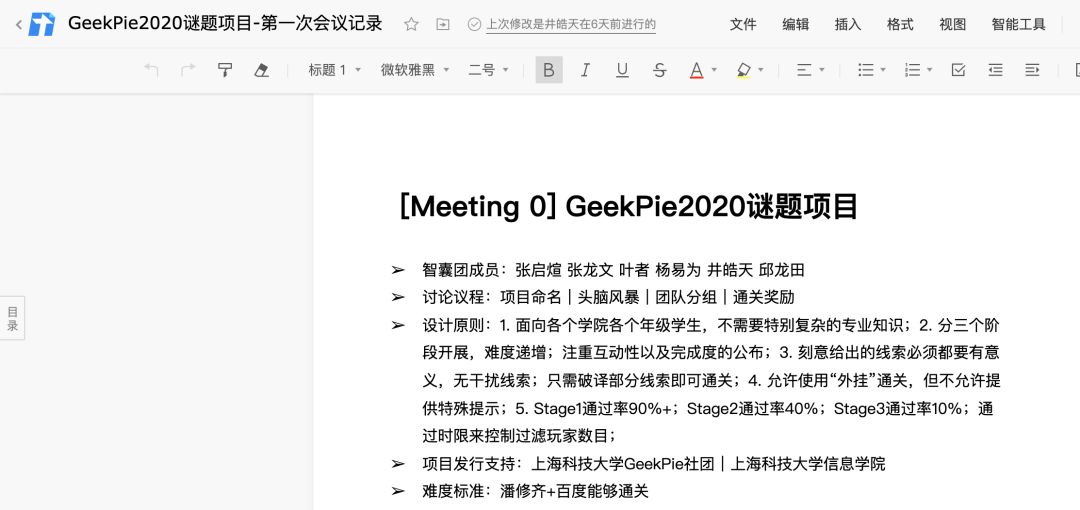 邱龙田:总体而言,我们游戏的设计还是比较流畅的。随时随地将游戏元素等想法记录到腾讯文档中,然后大家集中讨论,很快就基本确定了游戏的框架和思路。
