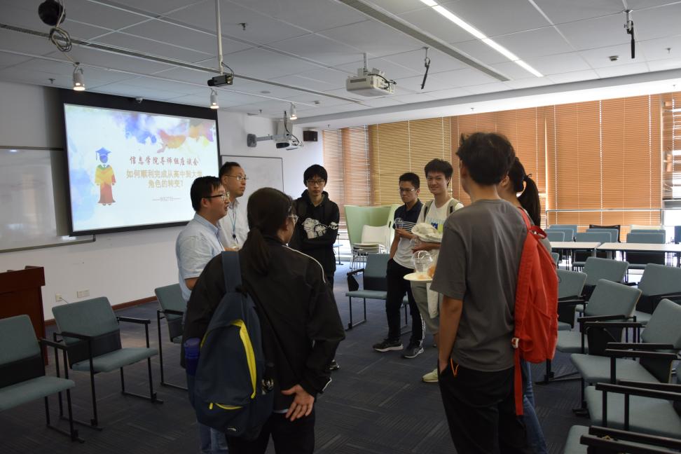 光阴似箭,大一新生已经在上科大度过了三周的时光。入校以来,同学们体验到了更开放的学习环境,更多元的课程选择,更丰富的社团活动。相比于高中来说,大学生活无疑有着更多的选择与机遇。但如何正确面对大学生活,完成从高中生到大学生的身份转变,很多同学心中仍然没有确切的答案。为此,信息学院举办了新学期首期本科生书院导师组座谈会,邀请了六位书院导师,与同学们面对面交流,向同学们传授作为“过来人”的宝贵经验。
