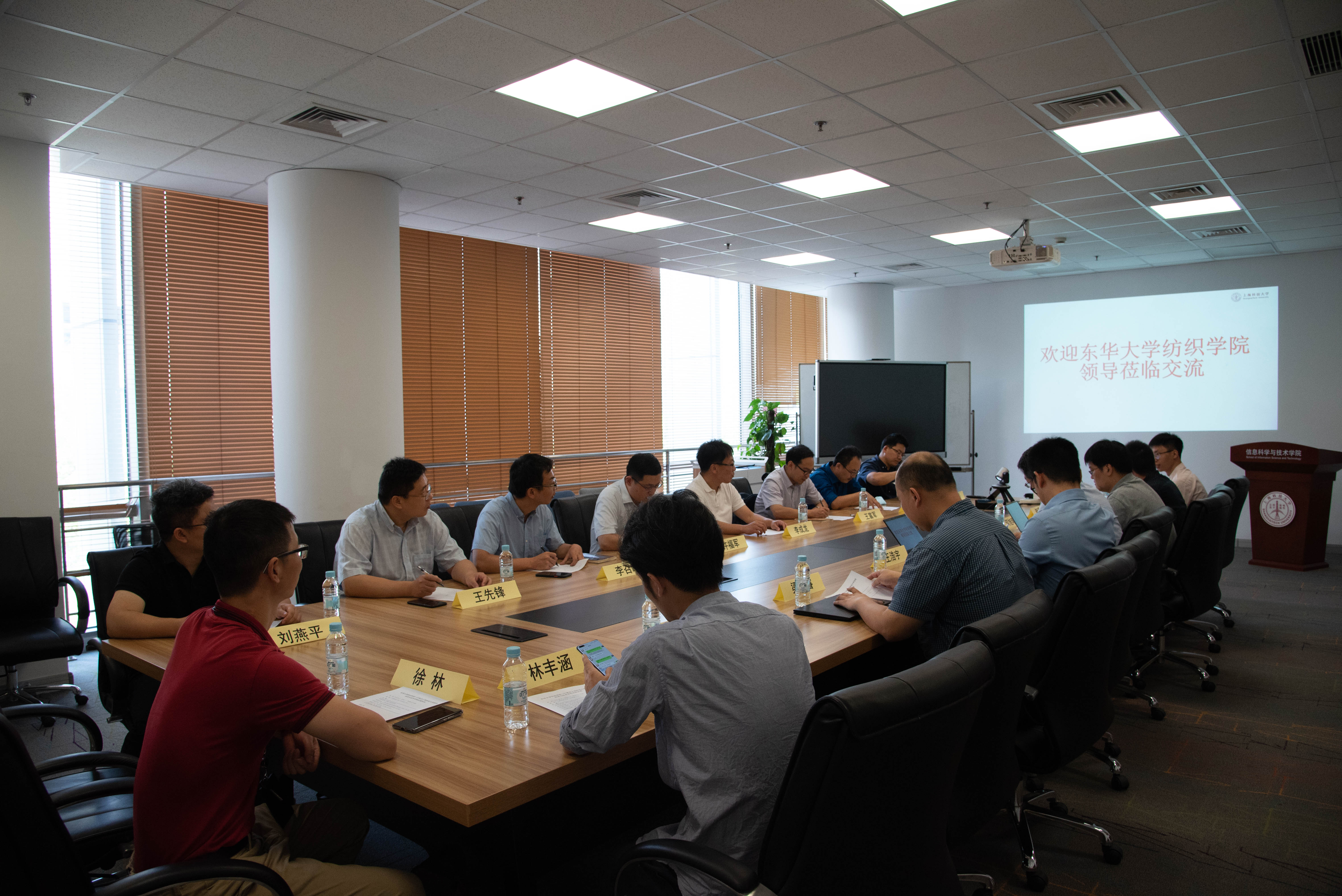 听取了信息学院的介绍后,东华大学纺织学院书记李成龙逐一介绍了来访教授,并请纺织学院副院长王富军教授介绍了东华大学的发展历史以及纺织学院的师资队伍、学生规模和科研布局。王院长重点介绍了纺织学院在航天、航空、军工、医学等前沿学科领域的科研成果,并列举了纺织学院多项特色研究成果。参会教授们也纷纷就各自研究方向及潜在合作领域展开了进一步的交流和探讨。