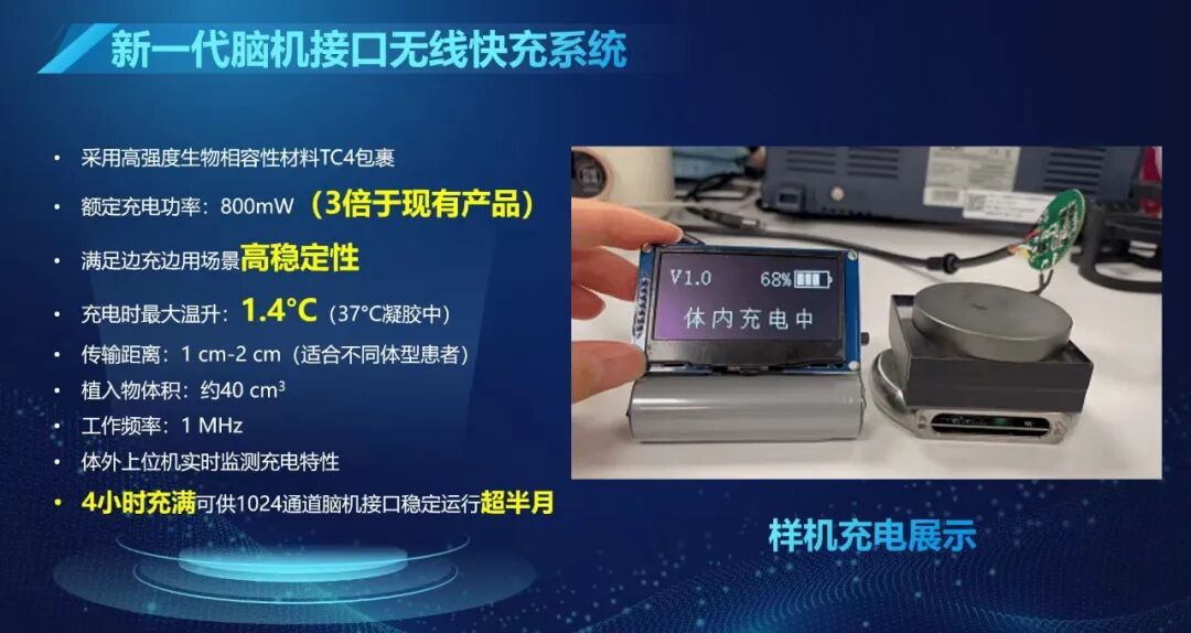 项目核心技术实现了800mW的高功率无线充电能力,在植入式医疗设备领域这是一个里程碑式的飞跃。同时,系统将体内植入设备的最大温升控制在2℃以内,有效避免了植入体过热对人体组织造成的潜在损伤。该系统还全面满足了严苛的生物相容性、电磁兼容性等植入体安全核心指标。目前,该技术的医疗器械原型已顺利通过相关,并正式进入猴脑实验阶段,标志着其向实际临床应用迈出了坚实一步。