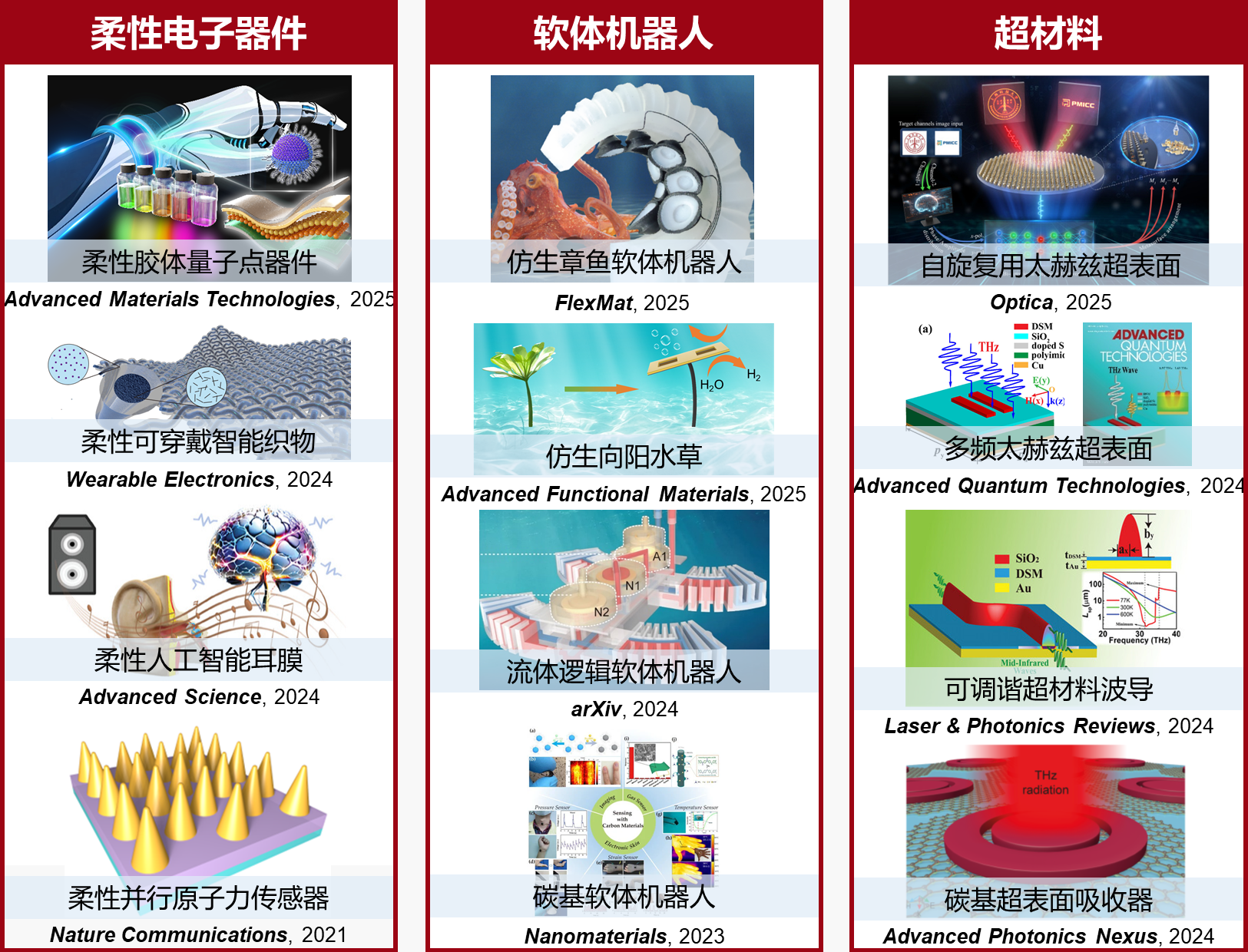 18. Jiangtao Tian and Wenhan Cao. “Reconfigurable flexible metasurfaces: from fundamentals towards biomedical applications.” PhotoniX 5.1 (2024): 2.