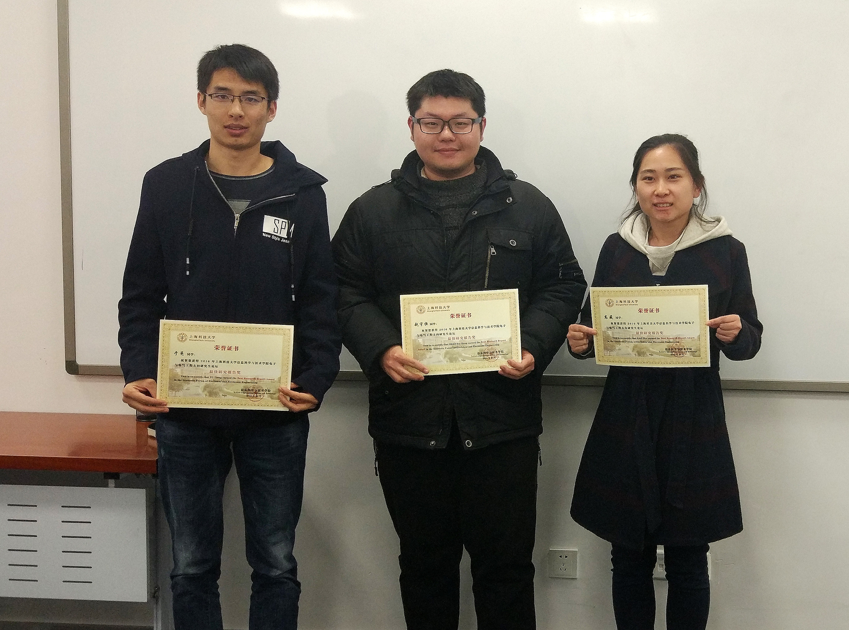 The three students: the second-year PhD student Gao Wei (tutor: Prof. Zhou Pingqiang), the third-year master student Zhao Yuheng (tutor: Prof. Liang Junrui), and the second-year master student Yu Liang (tutor: Prof. Wang Haoyu) won the "Best Research Report Award".