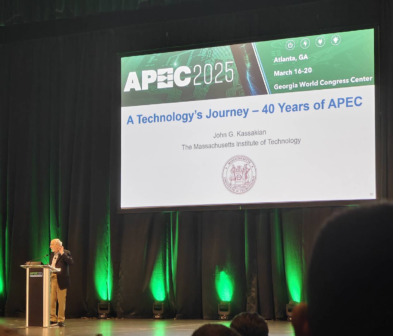 首先是由MIT荣誉教授 John G. Kassakian回顾了 APEC 40年间电力电子在半导体、控制、封装与传感器领域的突破,并展望未来十年的技术变革。随后,多位行业领袖,围绕电力电子领域的技术演进与未来趋势展开精彩演讲。