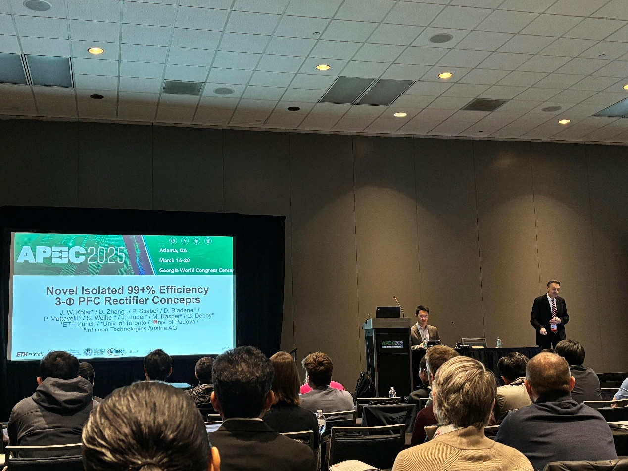 来自PEARL实验室的王子尧同学有幸在点负载变换器专题中针对他的APEC论文《Reconfigurable Trans-Inductor Voltage Regulator with Improved Light Load Efficiency in Data Center Applications》进行了汇报。汇报引起了激烈讨论,有两位同学提出了诸多问题,一一得到了满意的解答,还有一位来自ADI的资深工程师给出了建设性意见。